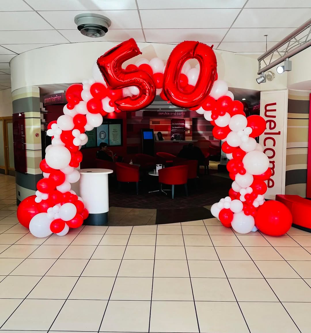 Custom Corporate & Showroom Balloon Arch (Red & White Edition)